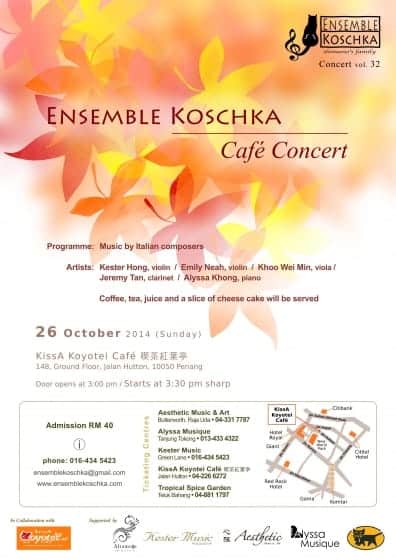 Programme Music by Italian composers Artists Jeremy Tan, clarinet Kester Hong, violin Emily Neah, violin Khoo Wei Min, viola Alyssa […]